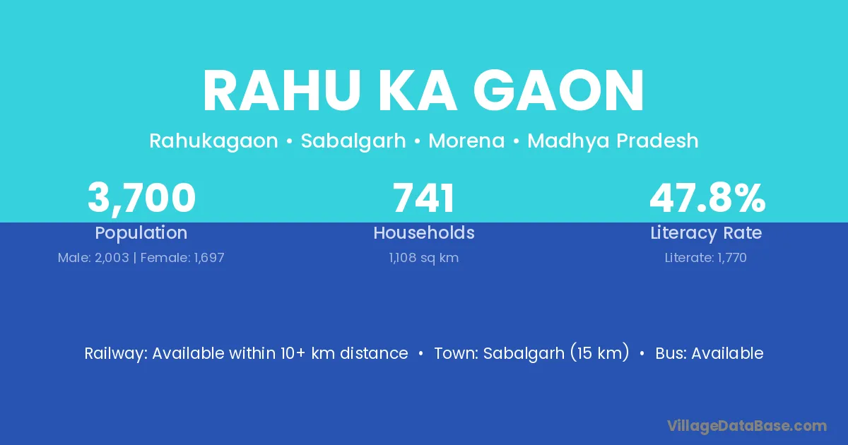Sabalgarh (15 km) is the nearest town to Rahu Ka Gaon village for major economic activities and is located approximately 15 km away.