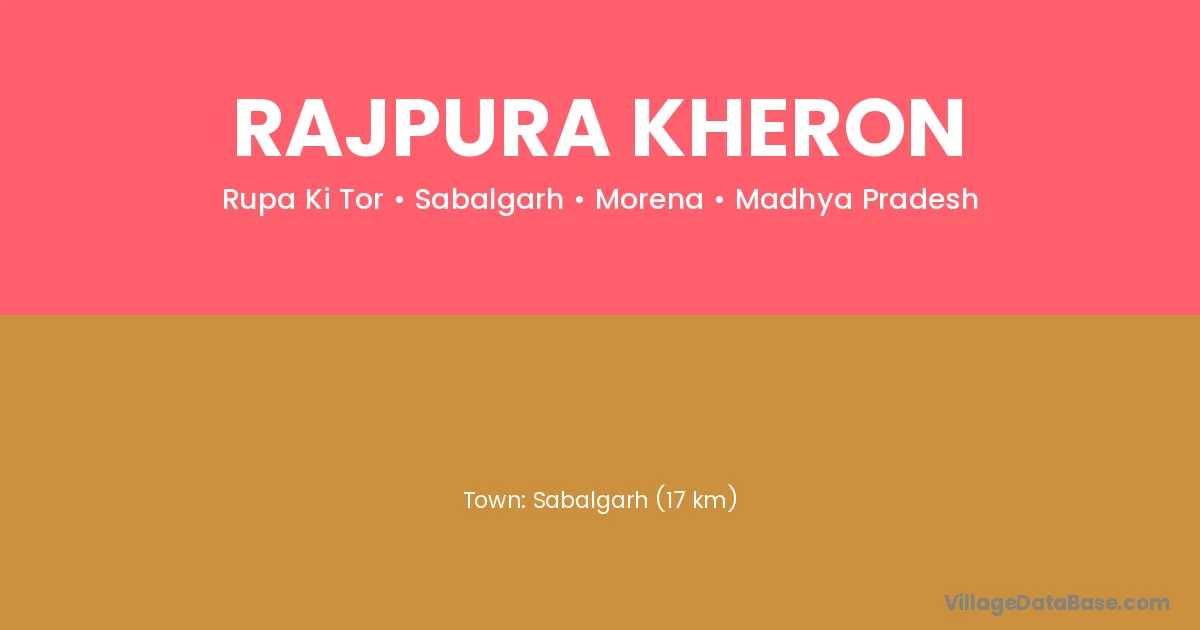 Sabalgarh (17 km) is the nearest town to Rajpura Kheron village for major economic activities and is located approximately 17 km away.