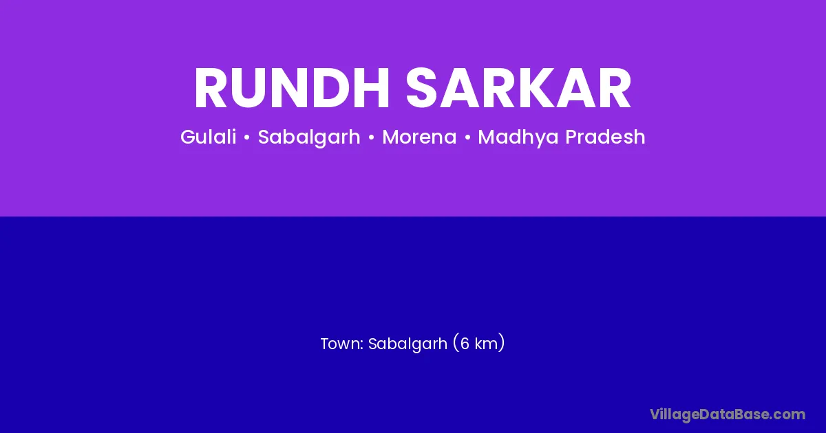 Sabalgarh (6 km) is the nearest town to Rundh Sarkar village for major economic activities and is located approximately 6 km away.
