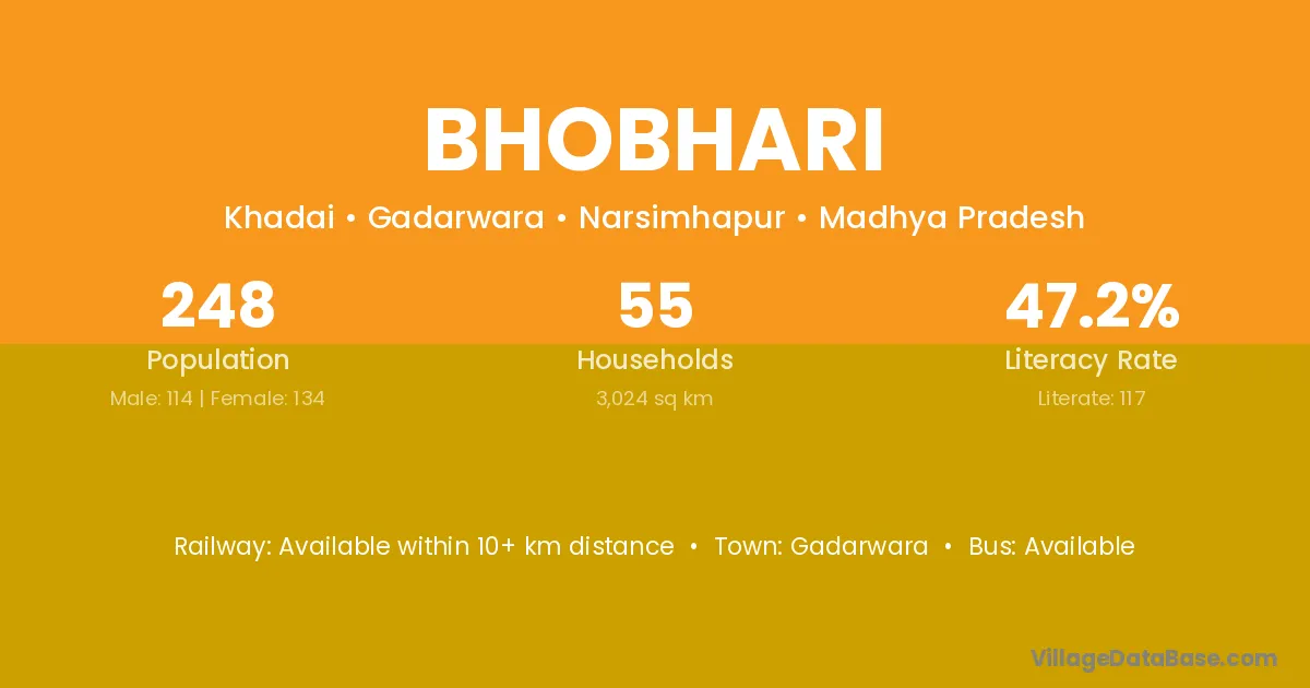 Gadarwara is the nearest town to Bhobhari village for major economic activities