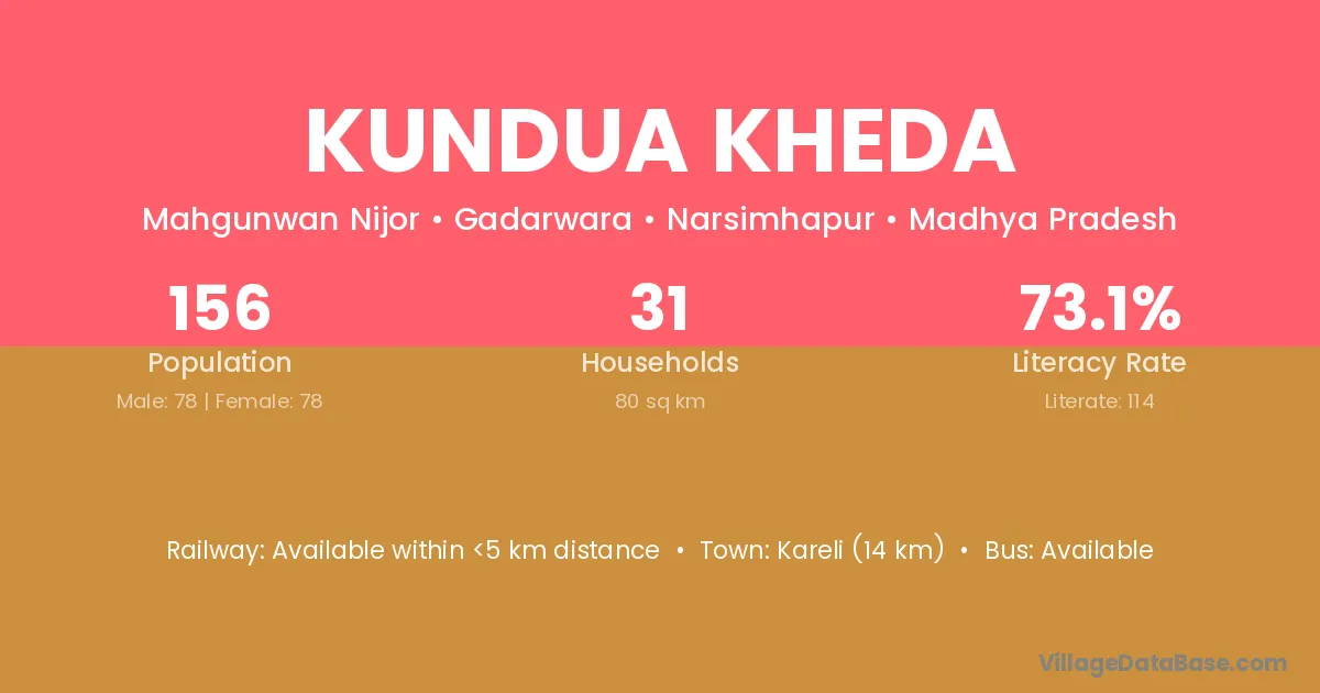Kareli (14 km) is the nearest town to Kundua Kheda village for major economic activities and is located approximately 14 km away.