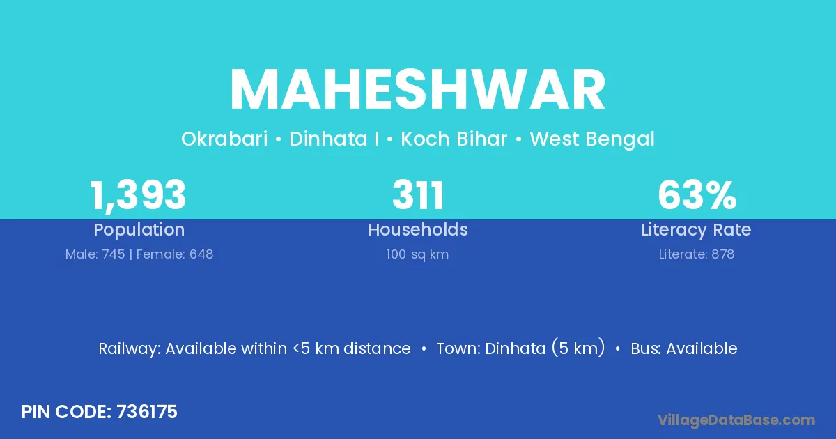 Gadarwara (39 km) is the nearest town to Maheshwar village for major economic activities and is located approximately 39 km away.