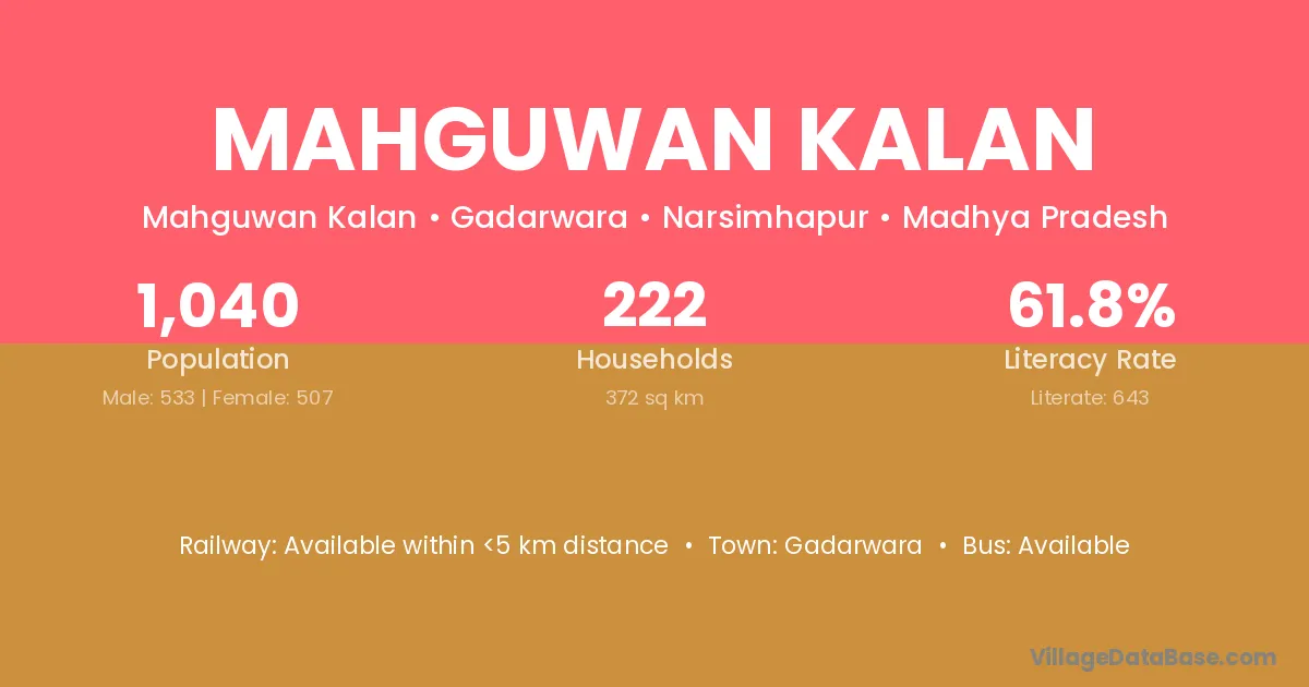 Mahguwan Kalan village has a total population of 1,040 people, of which 533 are males and 507 are females.
