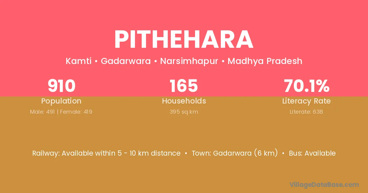 Gadarwara (6 km) is the nearest town to Pithehara village for major economic activities and is located approximately 6 km away.