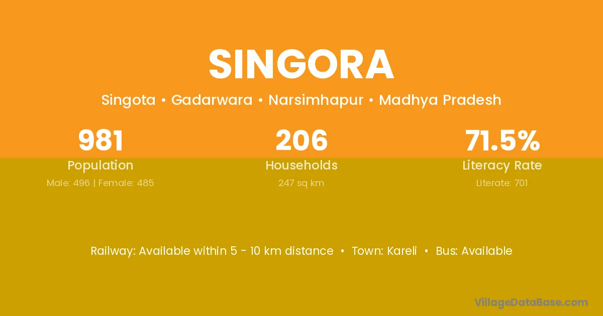 Singora village has a total population of 981 people, of which 496 are males and 485 are females.