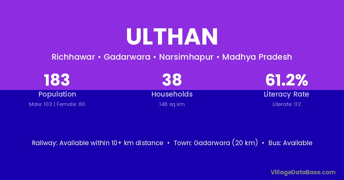 Gadarwara (20 km) is the nearest town to Ulthan village for major economic activities and is located approximately 20 km away.