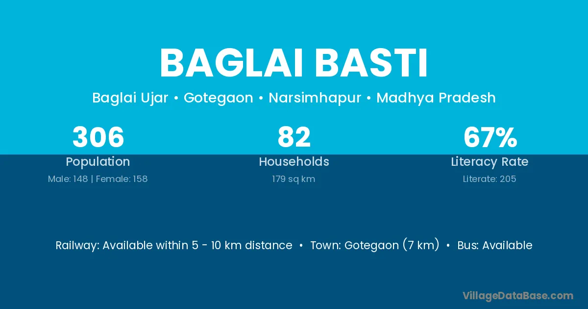 Baglai Basti village has a total population of 306 people, of which 148 are males and 158 are females.