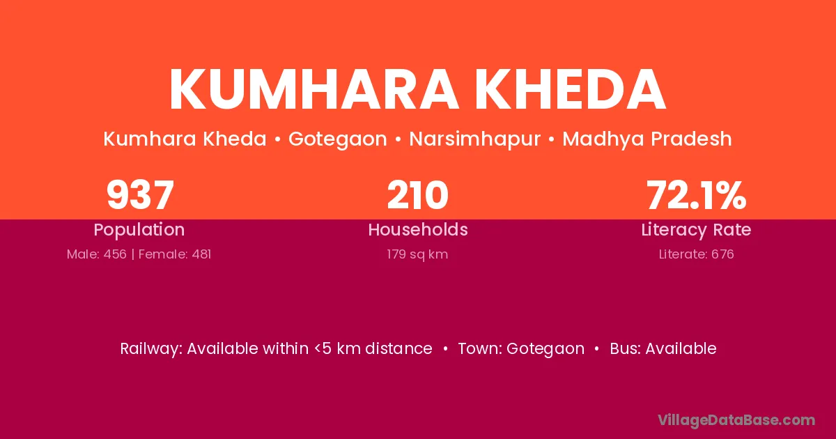 Gotegaon is the nearest town to Kumhara Kheda village for major economic activities