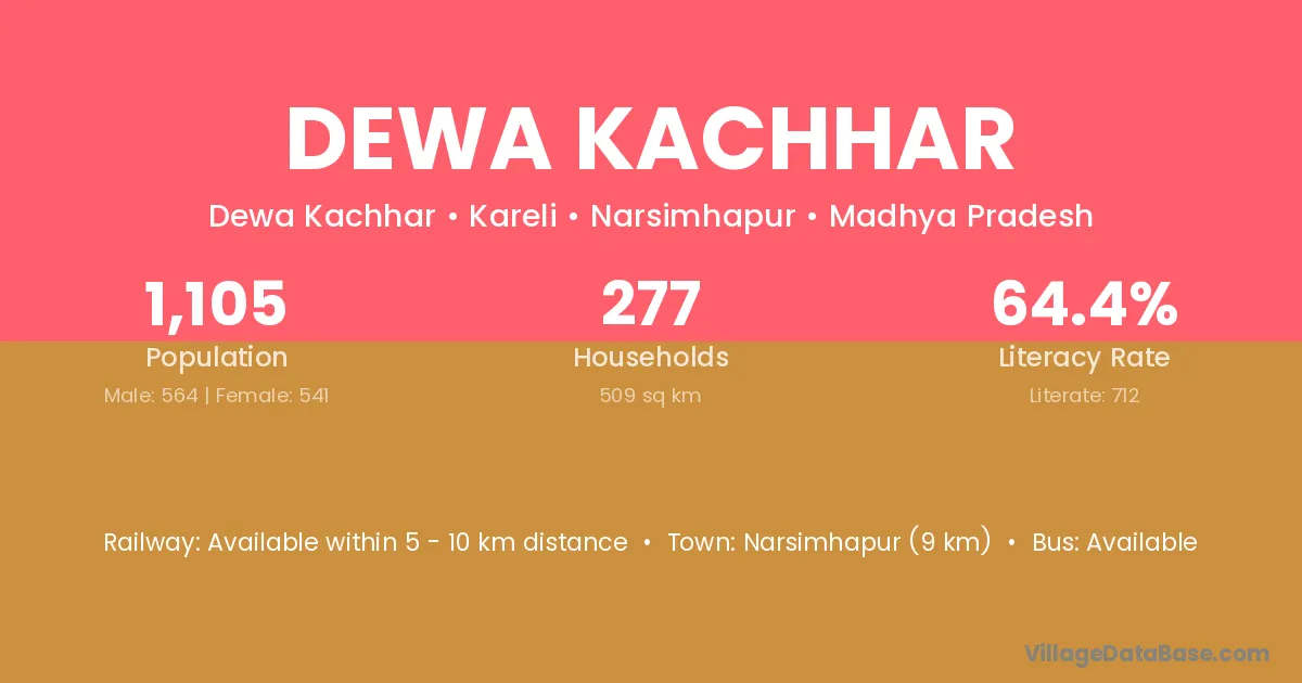 Narsimhapur (9 km) is the nearest town to Dewa Kachhar village for major economic activities and is located approximately 9 km away.