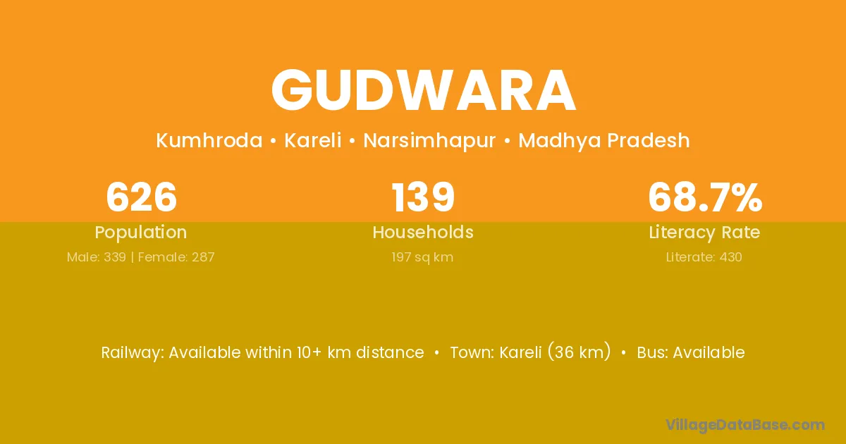 Kareli (36 km) is the nearest town to Gudwara village for major economic activities and is located approximately 36 km away.
