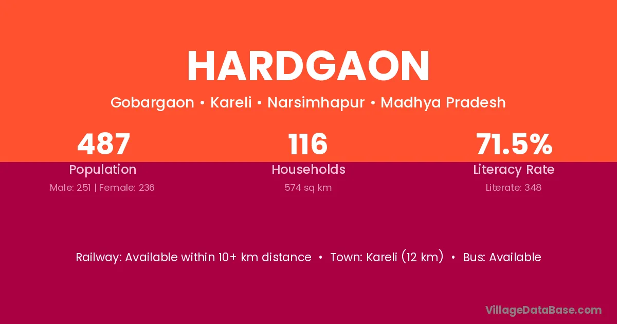 Kareli (12 km) is the nearest town to Hardgaon village for major economic activities and is located approximately 12 km away.