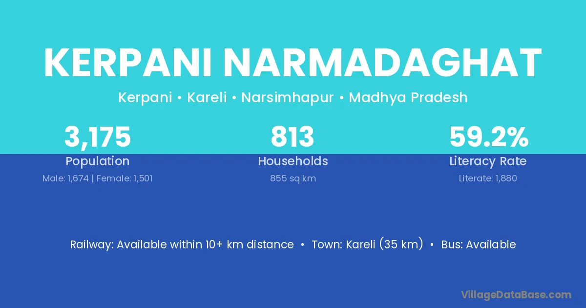 Kareli (35 km) is the nearest town to Kerpani Narmadaghat village for major economic activities and is located approximately 35 km away.