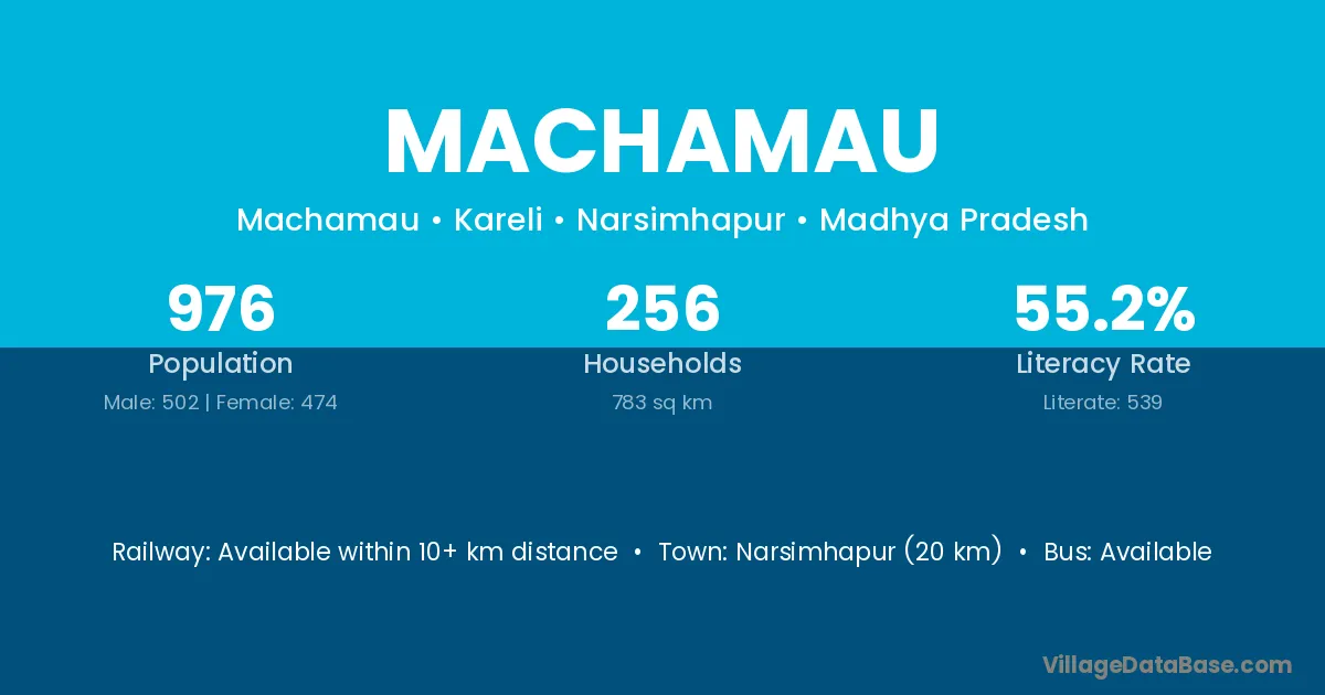 Narsimhapur (20 km) is the nearest town to Machamau village for major economic activities and is located approximately 20 km away.