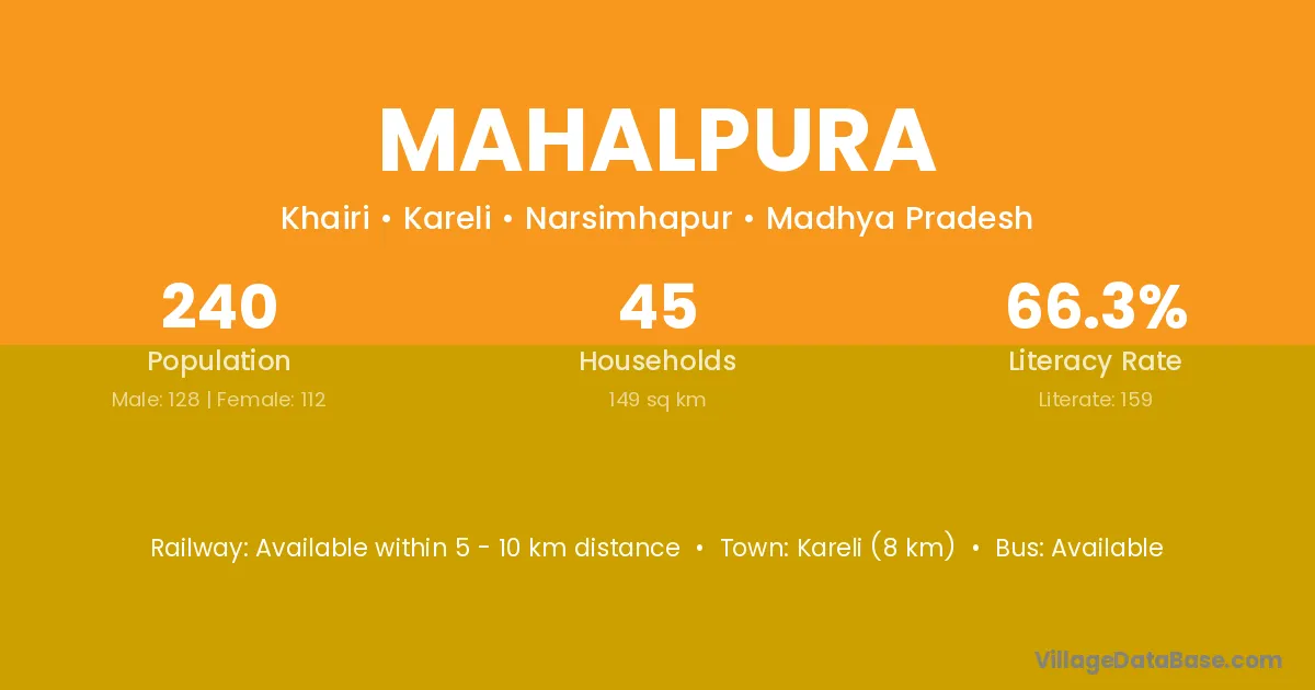 Kareli (8 km) is the nearest town to Mahalpura village for major economic activities and is located approximately 8 km away.