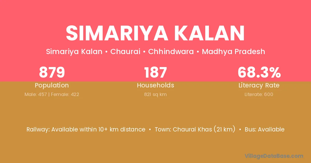 Simariya Kalan village has a total population of 1,910 people, of which 979 are males and 931 are females.