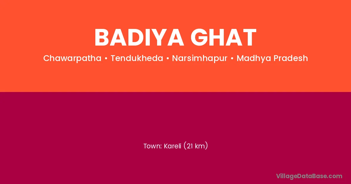 Kareli (21 km) is the nearest town to Badiya Ghat village for major economic activities and is located approximately 21 km away.