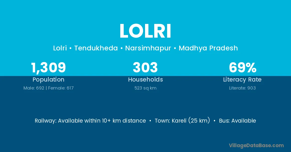 Kareli (25 km) is the nearest town to Lolri village for major economic activities and is located approximately 25 km away.