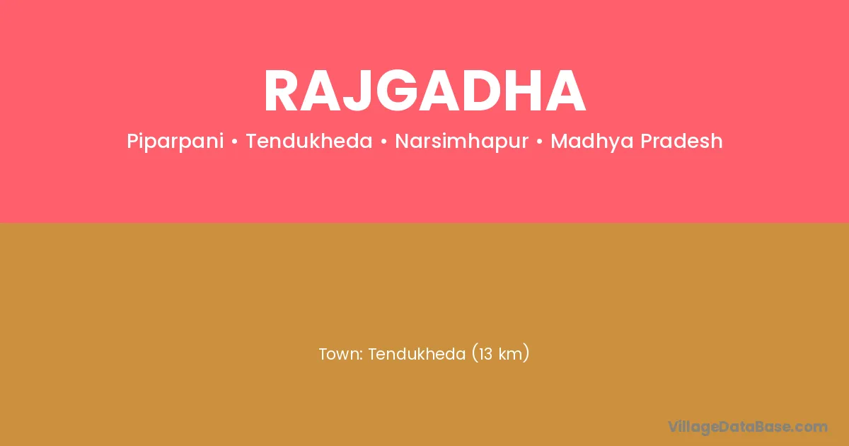 Tendukheda (13 km) is the nearest town to Rajgadha village for major economic activities and is located approximately 13 km away.