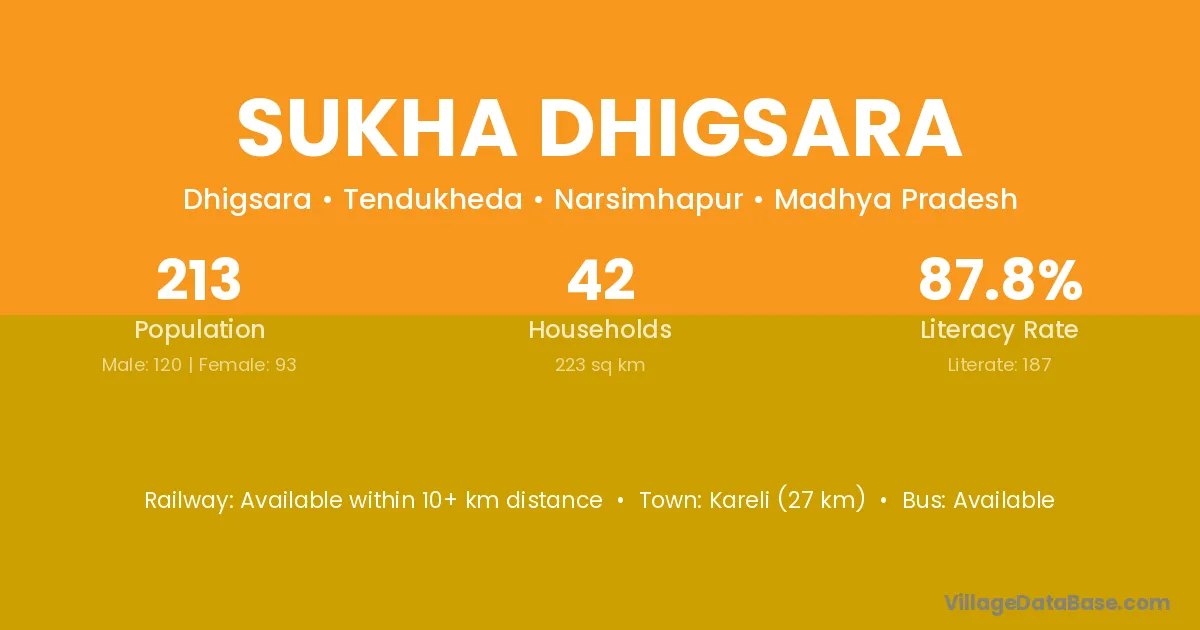 Kareli (27 km) is the nearest town to Sukha Dhigsara village for major economic activities and is located approximately 27 km away.