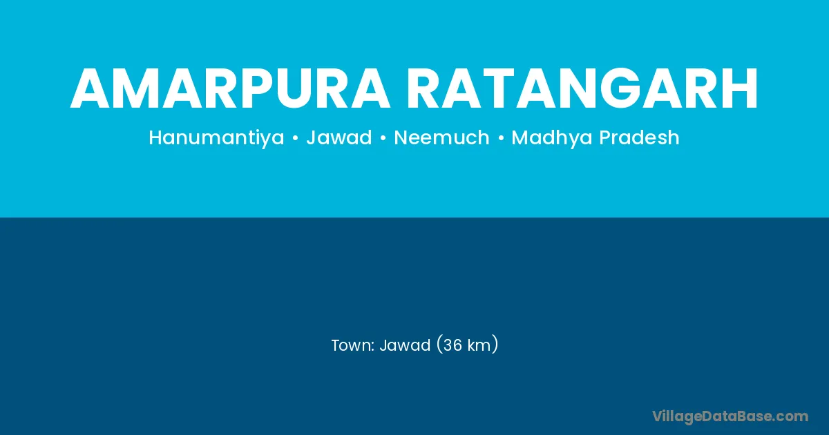 Jawad (36 km) is the nearest town to Amarpura Ratangarh village for major economic activities and is located approximately 36 km away.