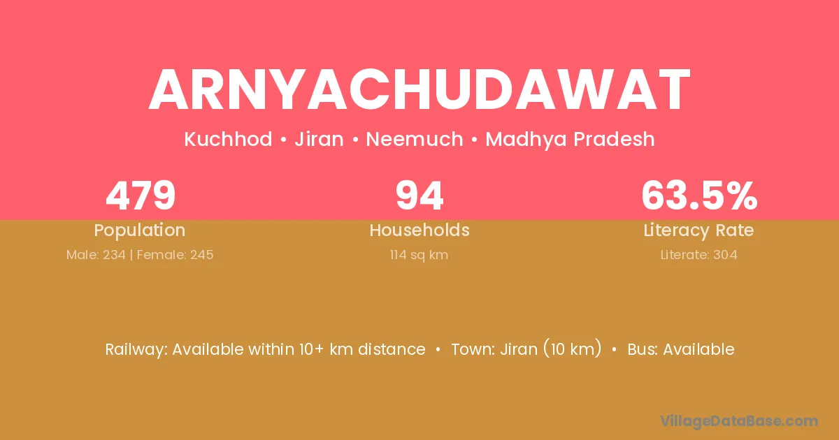 Arnyachudawat village has a total population of 479 people, of which 234 are males and 245 are females.