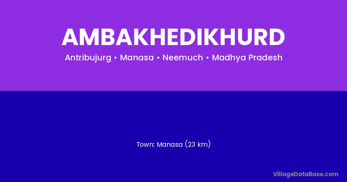 Manasa (23 km) is the nearest town to Ambakhedikhurd village for major economic activities and is located approximately 23 km away.