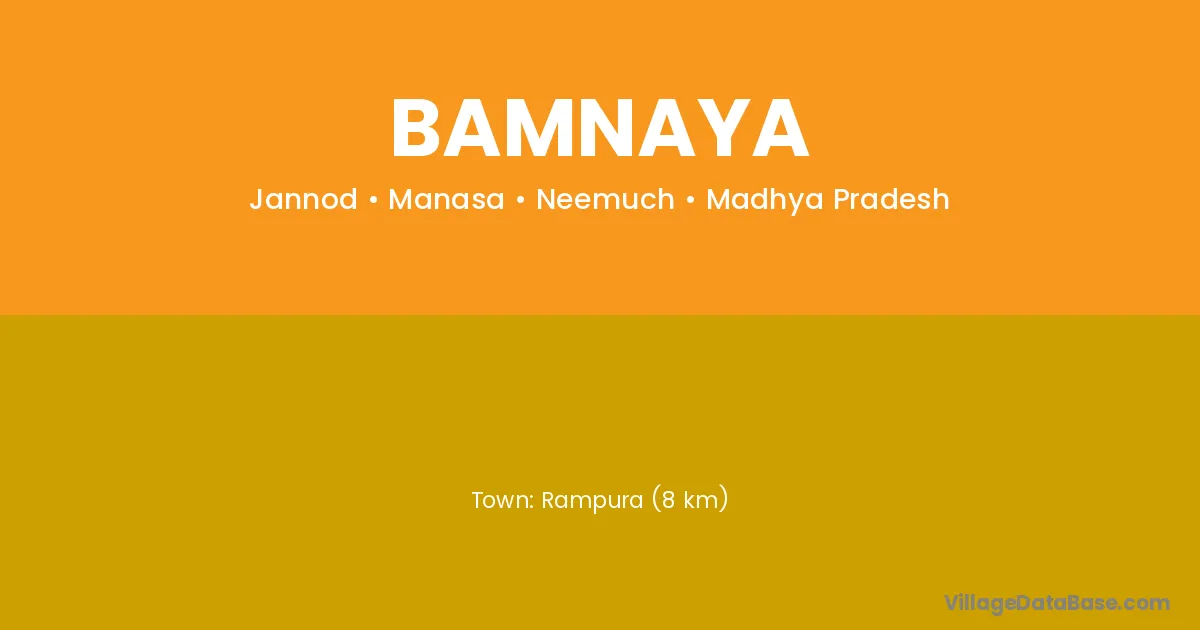 Rampura (8 km) is the nearest town to Bamnaya village for major economic activities and is located approximately 8 km away.
