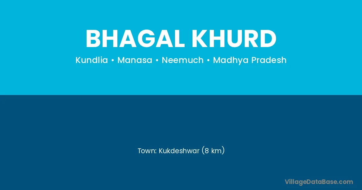 Kukdeshwar (8 km) is the nearest town to Bhagal Khurd village for major economic activities and is located approximately 8 km away.