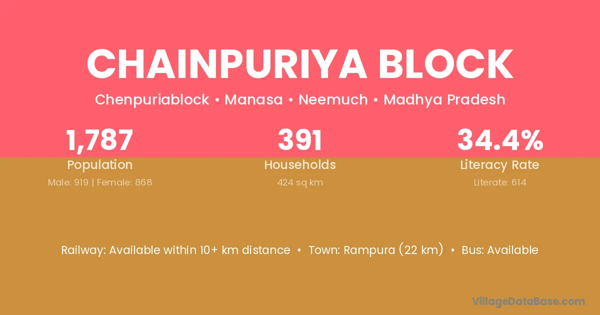 Rampura (22 km) is the nearest town to Chainpuriya Block village for major economic activities and is located approximately 22 km away.