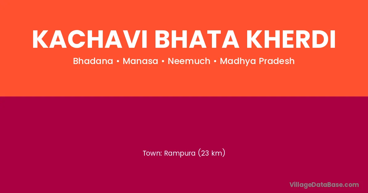 Rampura (23 km) is the nearest town to Kachavi Bhata Kherdi village for major economic activities and is located approximately 23 km away.