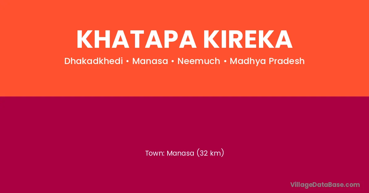 Manasa (32 km) is the nearest town to Khatapa Kireka village for major economic activities and is located approximately 32 km away.