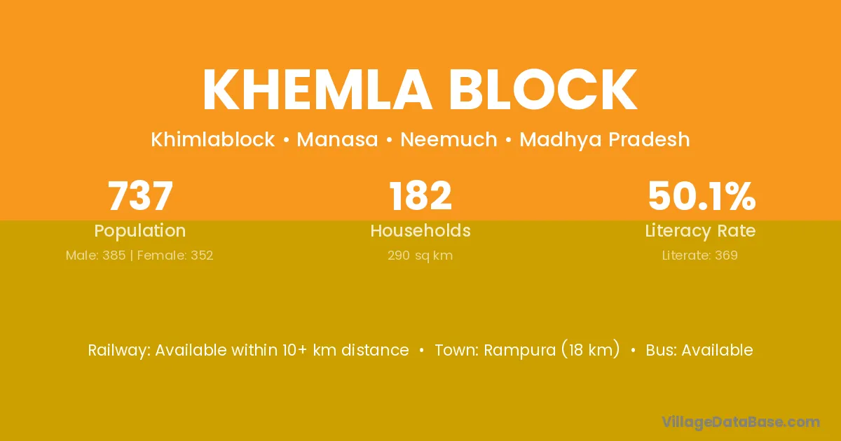 Rampura (18 km) is the nearest town to Khemla Block village for major economic activities and is located approximately 18 km away.