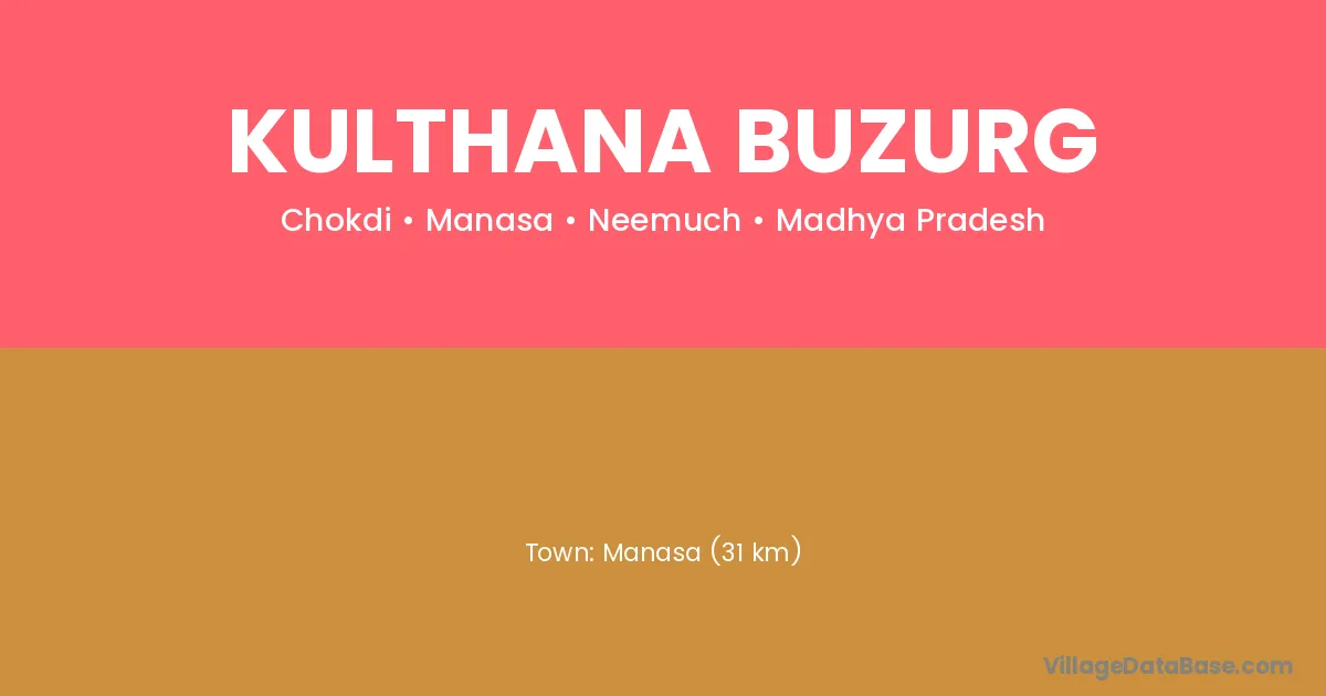 Manasa (31 km) is the nearest town to Kulthana Buzurg village for major economic activities and is located approximately 31 km away.