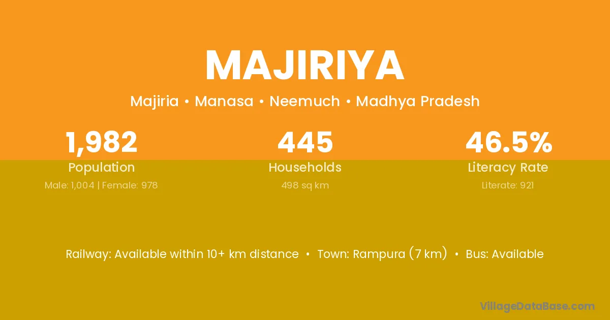 Rampura (7 km) is the nearest town to Majiriya village for major economic activities and is located approximately 7 km away.