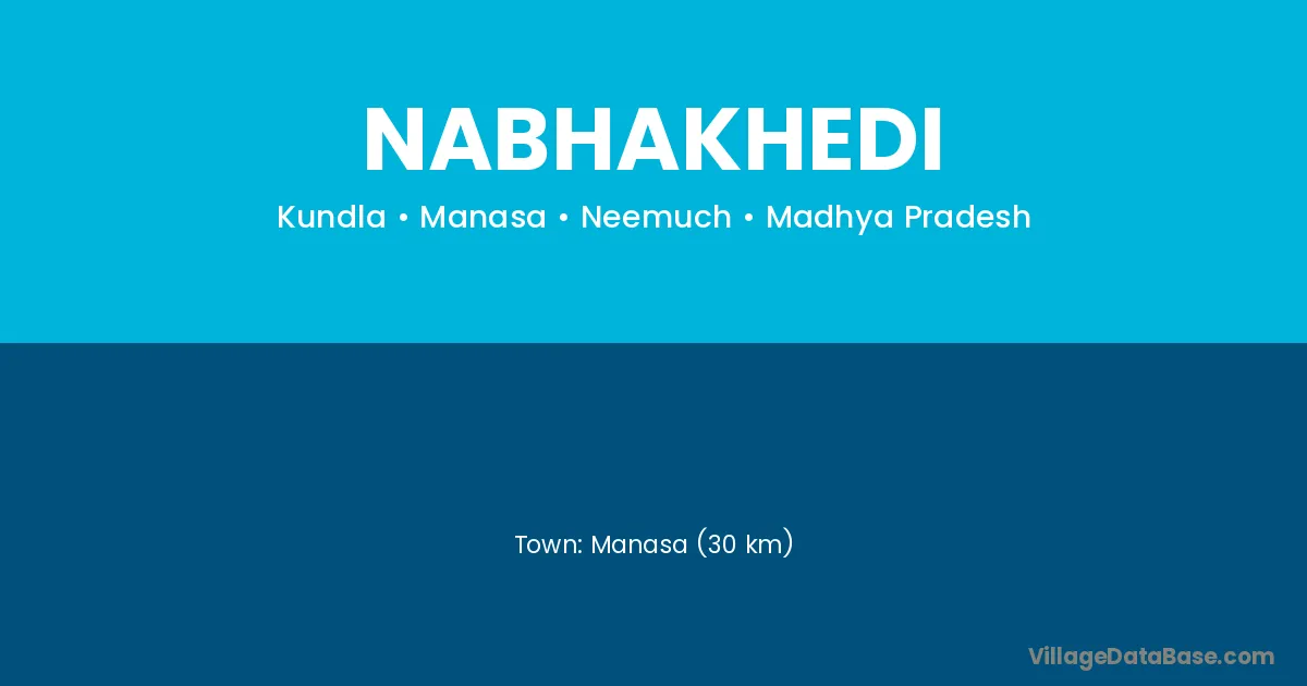 Manasa (30 km) is the nearest town to Nabhakhedi village for major economic activities and is located approximately 30 km away.