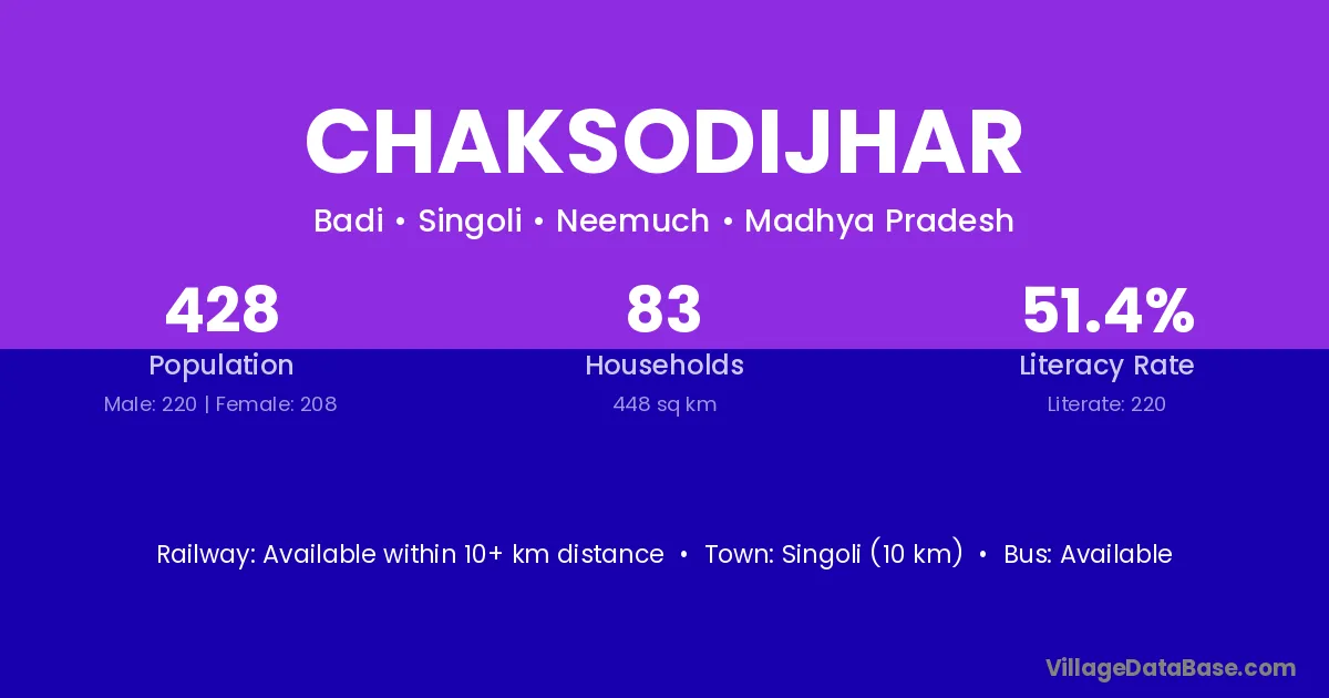 Chaksodijhar village has a total population of 428 people, of which 220 are males and 208 are females.