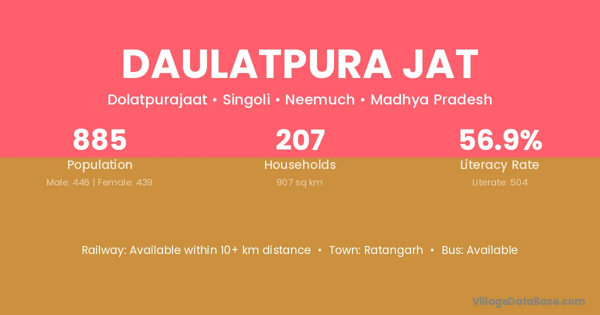 Daulatpura Jat village has a total population of 885 people, of which 446 are males and 439 are females.
