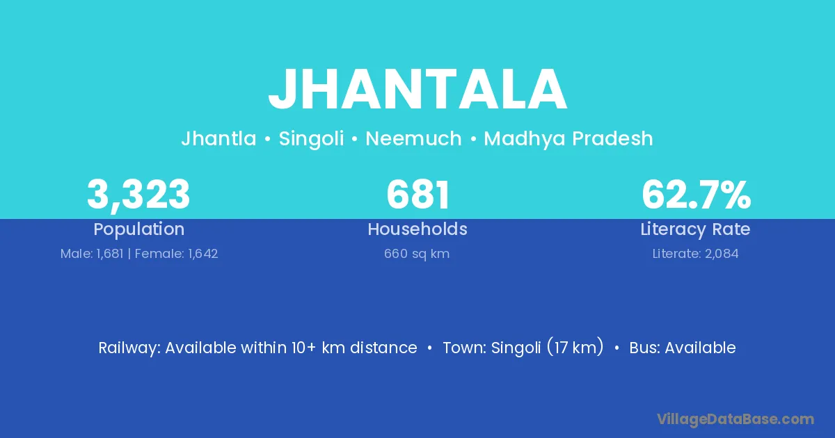 Singoli (17 km) is the nearest town to Jhantala village for major economic activities and is located approximately 17 km away.