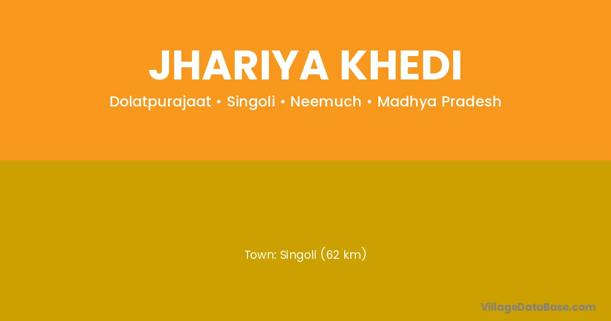 Singoli (62 km) is the nearest town to Jhariya Khedi village for major economic activities and is located approximately 62 km away.