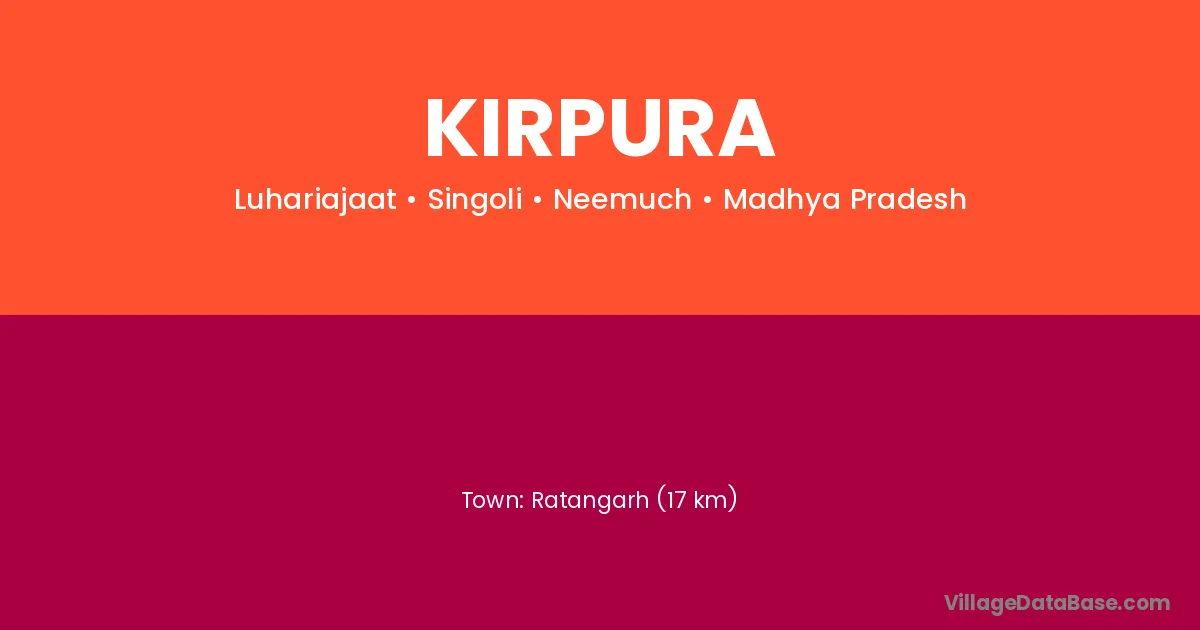 Ratangarh (17 km) is the nearest town to Kirpura village for major economic activities and is located approximately 17 km away.