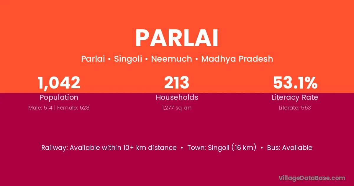 Singoli (16 km) is the nearest town to Parlai village for major economic activities and is located approximately 16 km away.