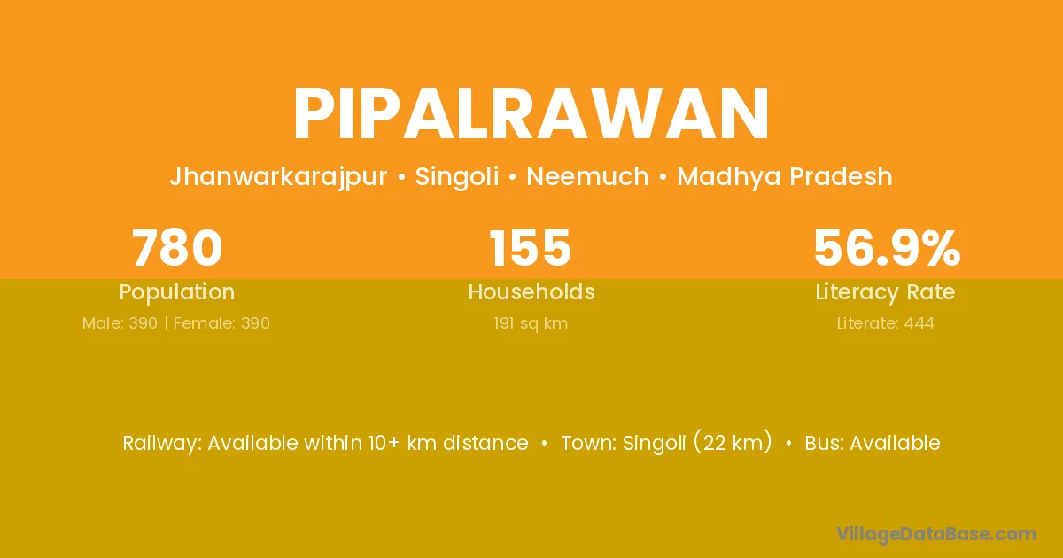 Singoli (22 km) is the nearest town to Pipalrawan village for major economic activities and is located approximately 22 km away.