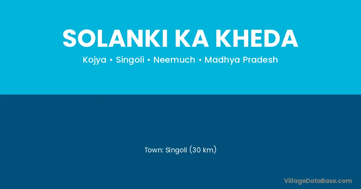 Singoli (30 km) is the nearest town to Solanki Ka Kheda village for major economic activities and is located approximately 30 km away.