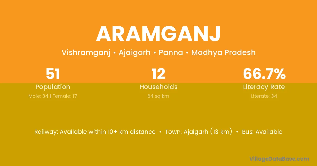 Aramganj village has a total population of 51 people, of which 34 are males and 17 are females.