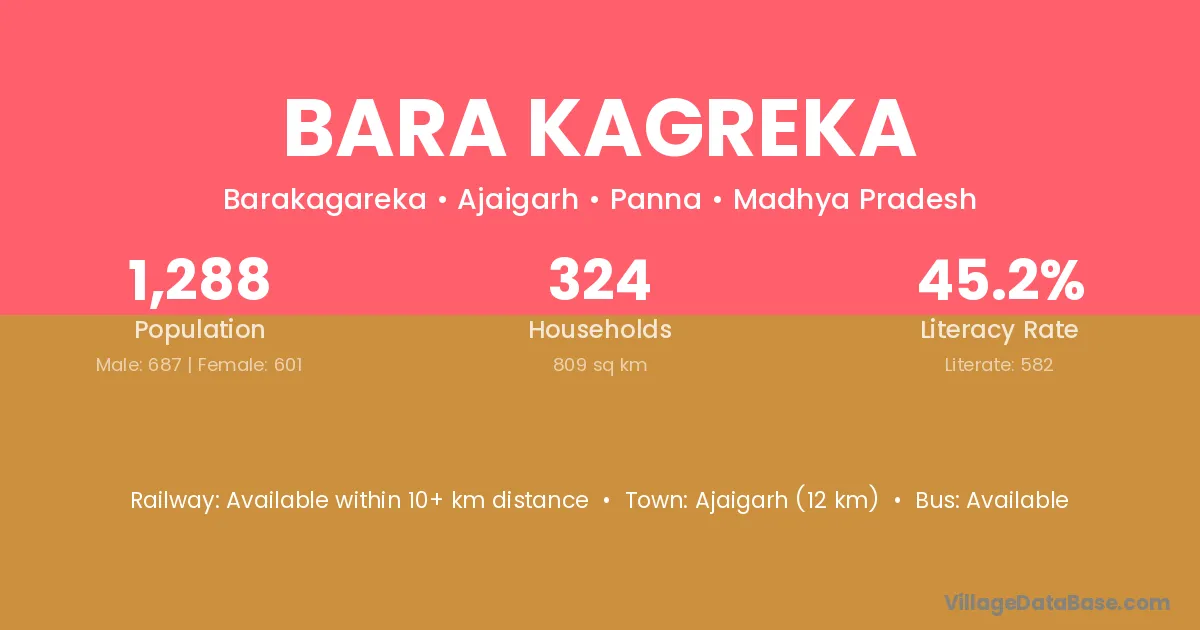 Ajaigarh (12 km) is the nearest town to Bara Kagreka village for major economic activities and is located approximately 12 km away.