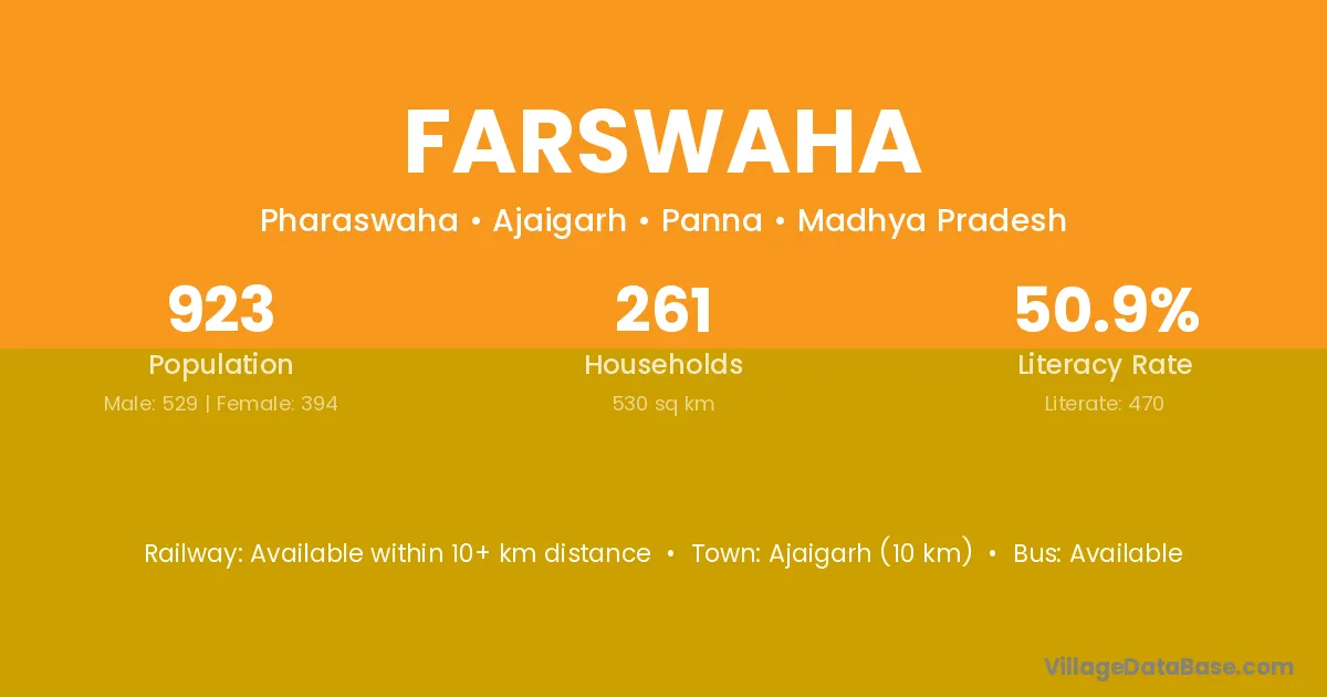 Ajaigarh (10 km) is the nearest town to Farswaha village for major economic activities and is located approximately 10 km away.