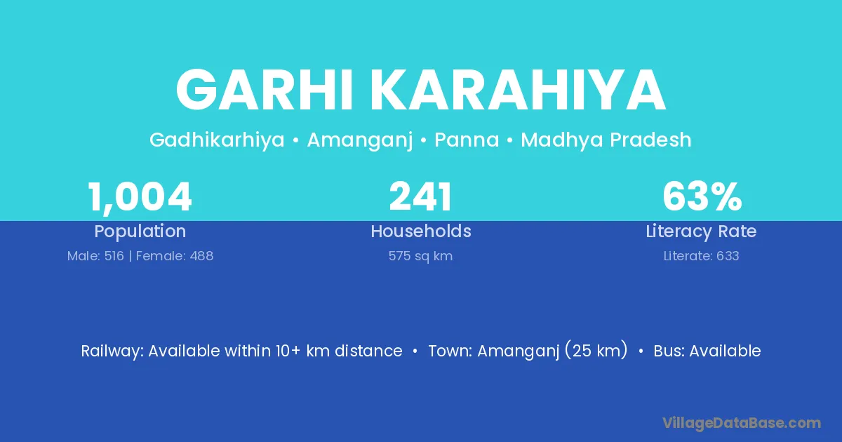 Amanganj (25 km) is the nearest town to Garhi Karahiya village for major economic activities and is located approximately 25 km away.