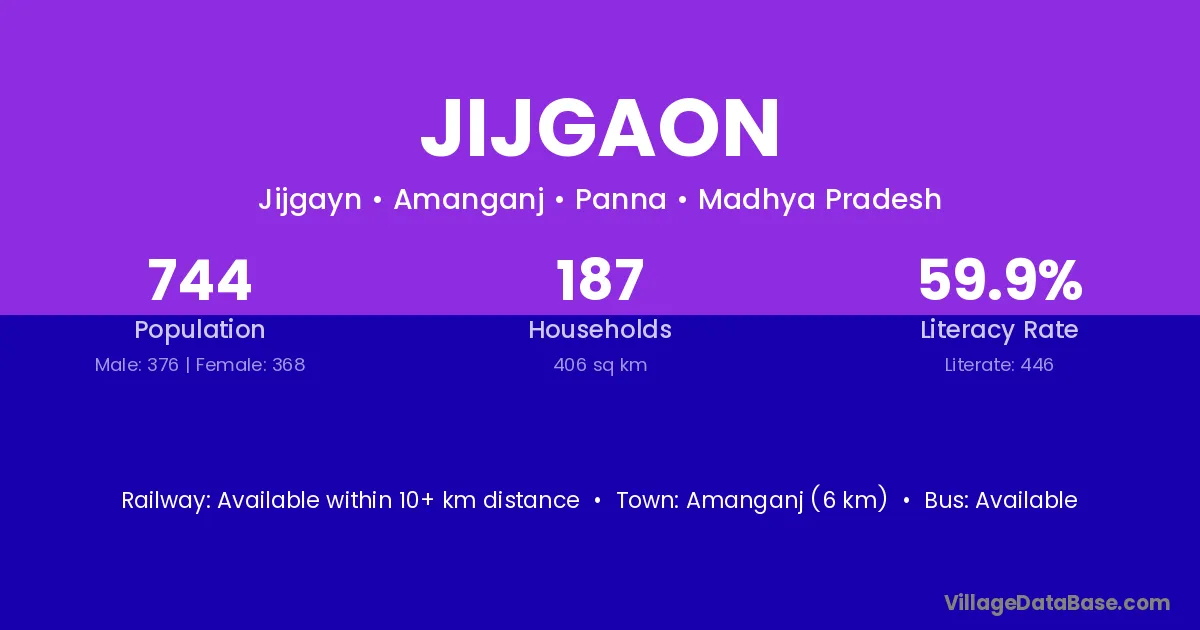 Jijgaon village has a total population of 744 people, of which 376 are males and 368 are females.