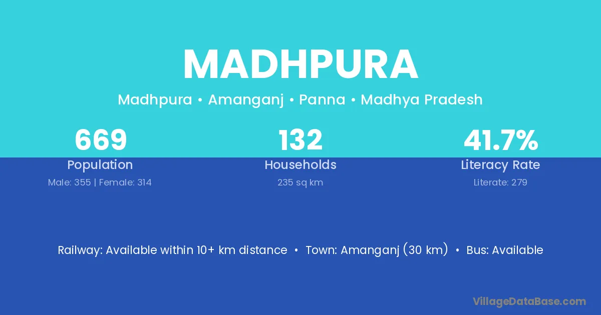 Amanganj (30 km) is the nearest town to Madhpura village for major economic activities and is located approximately 30 km away.
