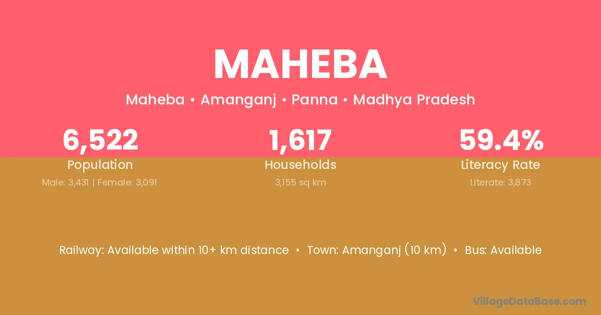 Amanganj (10 km) is the nearest town to Maheba village for major economic activities and is located approximately 10 km away.